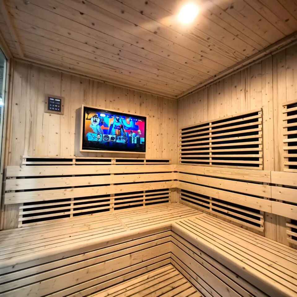 Tv LCD sing dibangun (katon ing gambar) Transformasi pengalaman sauna: