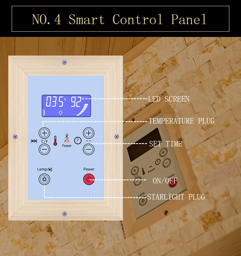 - Durasi sauna nawakake macem-macem setelan saka 15 nganti 90 menit, kanthi pangeling otomatis lan pendinginan bertahap sawise wektu sing wis disetel kanggo ngindhari rasa ora nyaman amarga overuse.