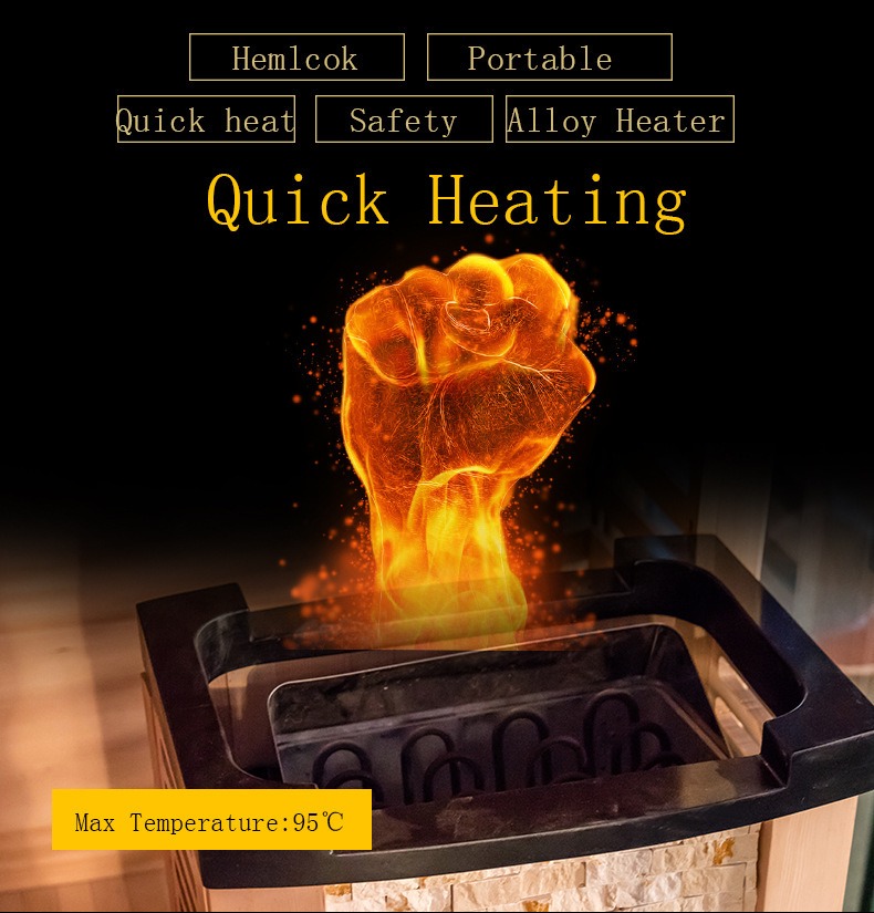 Kajaba iku, pemanas sauna dilengkapi piranti proteksi overheat sing mateni kanthi otomatis nalika suhu ngluwihi ambang safety, njamin efisiensi pemanasan lan safety pangguna.