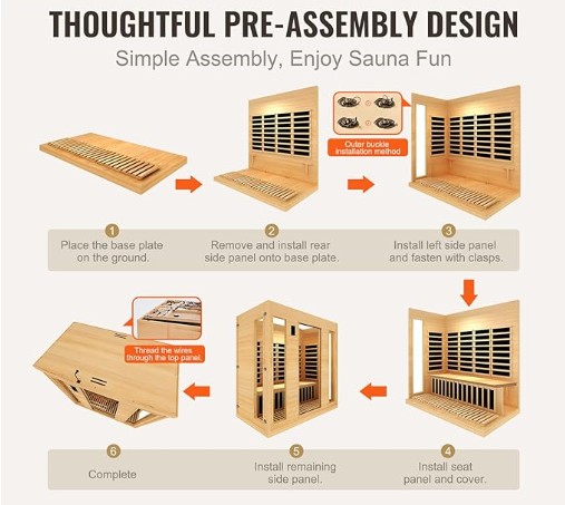 Desain pra-nglakokake: ruangan sauna nampilake desain pra-nglumpukake, sing mbutuhake mung Déwan mung sawise nampa. Mbusak instruksi instalasi lan diagram wiring diwenehake, ngilangi repot sing rumit banget.