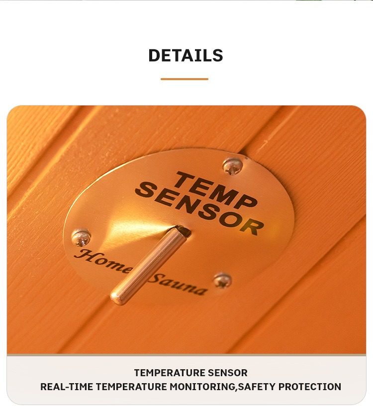 - Sistem Kontrol Suhu Real-Time: Sensor suhu sing dibangun kanthi akurat ngawasi suhu njero ruangan kanggo njamin keamanan sauna.