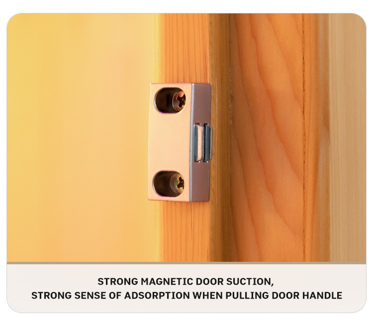 - Engsel Logam & Tangkap Pintu Magnetik: Engsel logam duwe kapasitas tahan beban sing kuat tanpa deformasi, lan lawang magnetik nyekel adsorbs kanthi kenceng kanggo ngunci panas lan privasi.