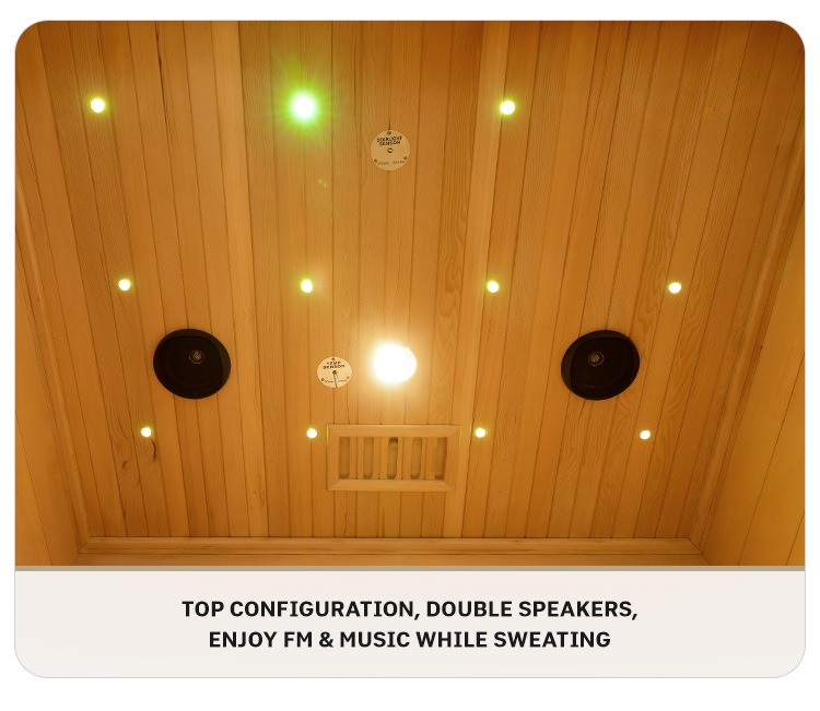 Sistem dual-speaker dikonfigurasi ing sisih ndhuwur, ndhukung radio FM lan puter maneh musik. Sampeyan bisa seneng melodi favorit utawa program radio nalika kringet, nganyarke pengalaman sauna immersive.