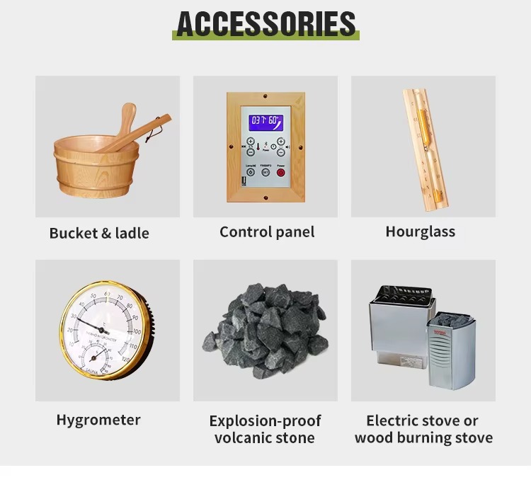 • Dilengkapi basis basis kayu kanggo mundhak ruangan sauna